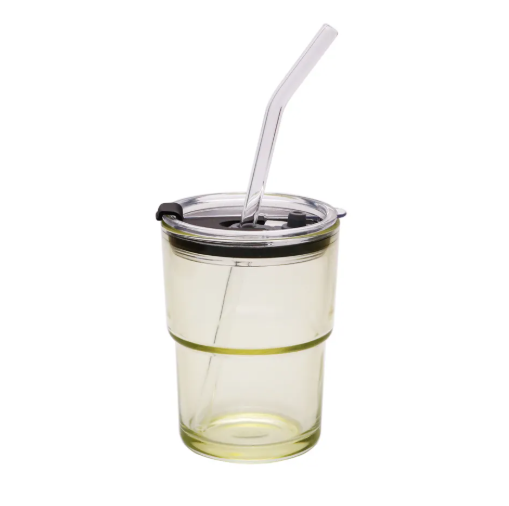 Copo de Vidro Ambar para Sublimação com Tampa de Acrílico e Canudo de Vidro - 400ml