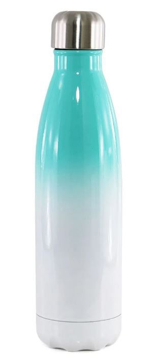 Para manter-se hidratado é mais prático ter sempre por perto uma garrafa, se ela for personalizada, fica muito melhor. Esta garrafa de aço inoxidável é muito mais resistente, pois tem parede dupla e mantém o líquido fresquinho, tem design ousado, na cor branca e Azul Tifany com tampa prata, ideal para academias e esportes em geral.