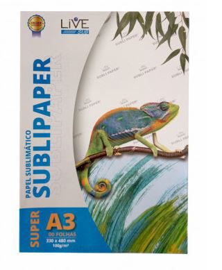 Papel Sublimático da marca live, garantia de altíssimo desempenho na impressão e na transferência da tinta para a superfície a ser estampada!