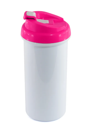 Squeeze de Plástico Branco para Sublimação com Tampa Rosa - 475ml