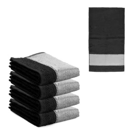 Esta toalha possui uma faixa branca que pode ser sublimada por completo, ou seja, 100% poliéster.