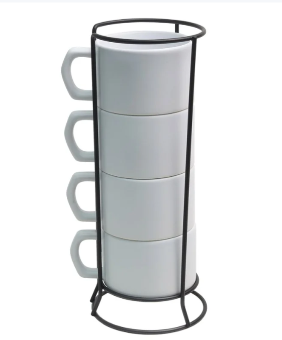 Contém: 4 xícaras de cerâmica (200ml cada) + suporte metálico preto